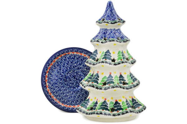 This Winter Tree 10" Christmas Tree Candle Holder was handmade and hand decorated in Boleslawiec, Poland by skilled artisans according to old traditional methods. This Polish stoneware is microwave, dishwasher, freezer, and oven safe up to 480°F. It does not contain lead or cadmium. It is part of the Winter Tree Collection.