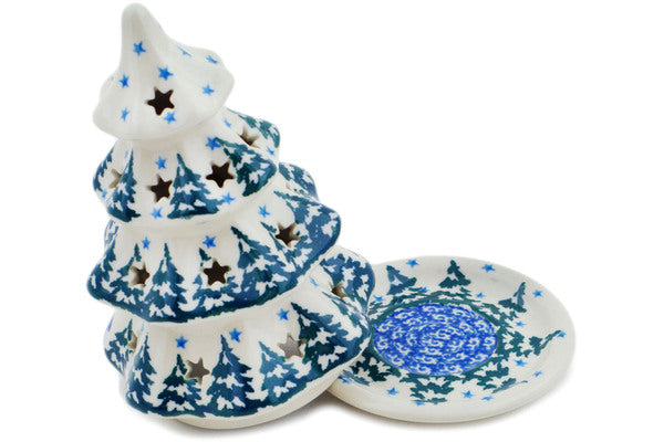 This Quiet Forest 6" Christmas Tree Candle Holder was handmade and hand decorated in Boleslawiec, Poland by skilled artisans according to old traditional methods. This Polish stoneware is microwave, dishwasher, freezer, and oven safe up to 480°F. It does not contain lead or cadmium. It is part of the Quiet Forest Collection.