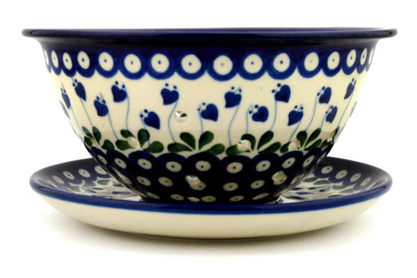 Home Ceramika Artystyczna Colander with Plate 8" Bleeding Heart Peacock Theme