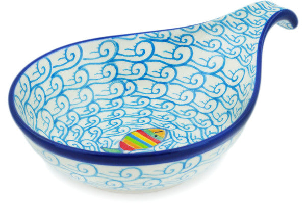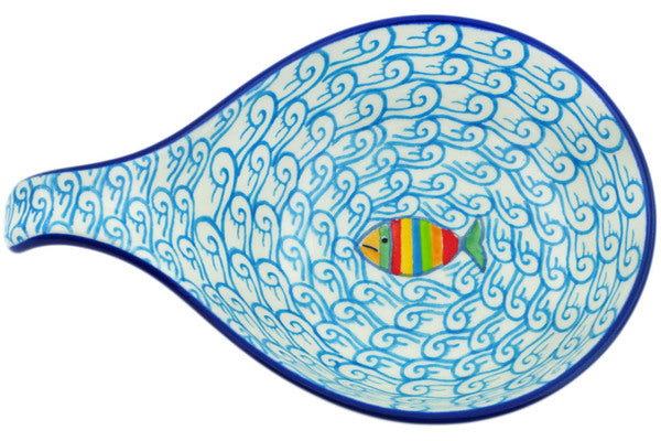 This Rainbow Fish 7" Condiment Dish was handmade and hand decorated in Boleslawiec, Poland by skilled artisans according to old traditional methods. This Polish stoneware is microwave, dishwasher, freezer, and oven safe up to 480°F. It does not contain lead or cadmium. It is part of the Rainbow Fish Collection.