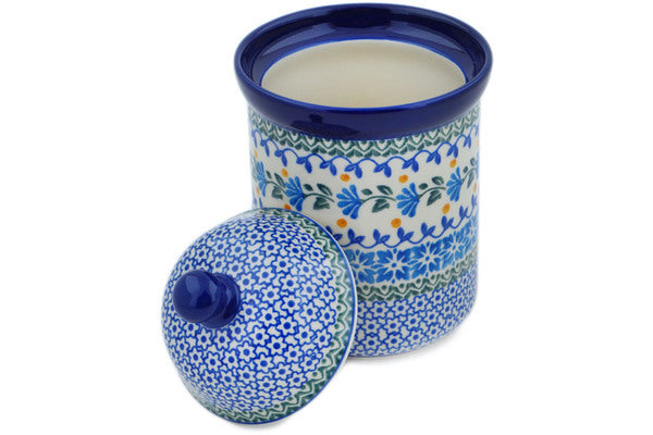 This Blue Fan Flowers 8" Cookie Jar was handmade and hand decorated in Boleslawiec, Poland by skilled artisans according to old traditional methods. This Polish stoneware is microwave, dishwasher, freezer, and oven safe up to 480°F. It does not contain lead or cadmium. It is part of the Blue Fan Flowers Collection.
