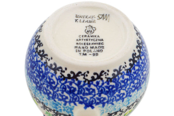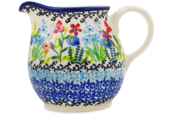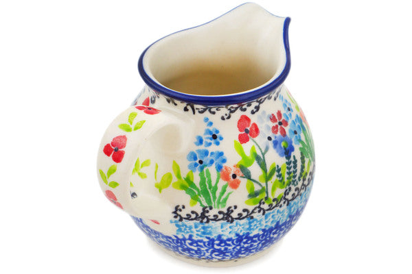 This Spring Essence Small Creamer was handmade and hand decorated in Boleslawiec, Poland by skilled artisans according to old traditional methods. This is a Polish pottery Signature Unikat, which means that it has been hand painted with both sponges and brushes and it is signed by the artist who painted it. Unikat pieces are the most intricate works of art. Larger Unikat items take hours of very careful work to finish. This Polish stoneware is microwave, dishwasher, freezer, and oven safe up to 480°F. It does not contain lead or cadmium. It is part of the Spring Essence Collection.