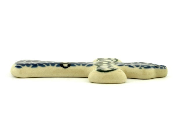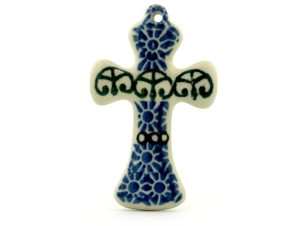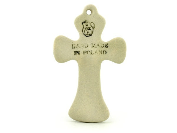 This Scroll Window 3" Cross was handmade and hand decorated in Boleslawiec, Poland by skilled artisans according to old traditional methods. This Polish stoneware is microwave, dishwasher, freezer, and oven safe up to 480°F. It does not contain lead or cadmium. It is part of the Scroll Window Collection.