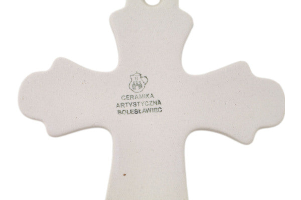 This Leaf Wreath 8" Cross was handmade and hand decorated in Boleslawiec, Poland by skilled artisans according to old traditional methods. This Polish stoneware is microwave, dishwasher, freezer, and oven safe up to 480°F. It does not contain lead or cadmium. It is part of the Leaf Wreath Collection.