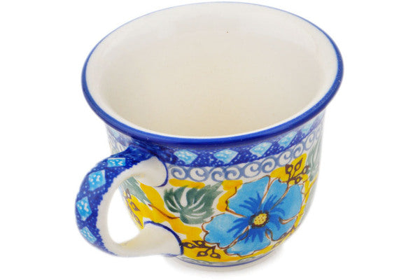 This Brilliant In Blue 6 oz Cup was handmade and hand decorated in Boleslawiec, Poland by skilled artisans according to old traditional methods. This is a Polish pottery Signature Unikat, which means that it has been hand painted with both sponges and brushes and it is signed by the artist who painted it. Unikat pieces are the most intricate works of art. Larger Unikat items take hours of very careful work to finish. This Polish stoneware is microwave, dishwasher, freezer, and oven safe up to 480°F. It does not contain lead or cadmium. It is part of the Brilliant In Blue Collection.