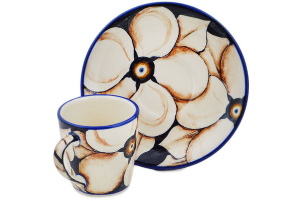 This Autumn Poppies 3 oz Cup with Saucer was handmade and hand decorated in Boleslawiec, Poland by skilled artisans according to old traditional methods. This is a Polish pottery Signature Unikat, which means that it has been hand painted with both sponges and brushes and it is signed by the artist who painted it. Unikat pieces are the most intricate works of art. Larger Unikat items take hours of very careful work to finish. This Polish stoneware is microwave, dishwasher, freezer, and oven safe up to 480°F. It does not contain lead or cadmium. It is part of the Autumn Poppies Collection.
