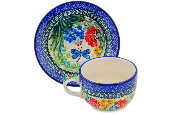 Cup with Saucer 9 oz Garden Delight Theme UNIKAT
