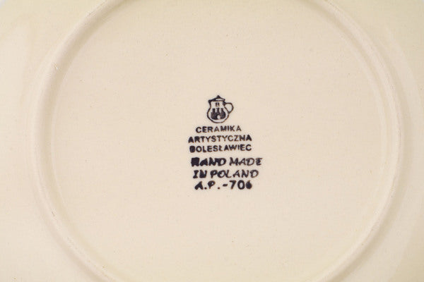 This Egg Hunt 8" Dessert Plate was handmade and hand decorated in Boleslawiec, Poland by skilled artisans according to old traditional methods. This Polish stoneware is microwave, dishwasher, freezer, and oven safe up to 480°F. It does not contain lead or cadmium. It is part of the Egg Hunt Collection.