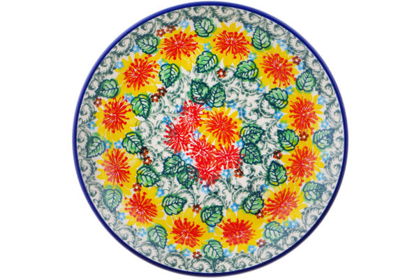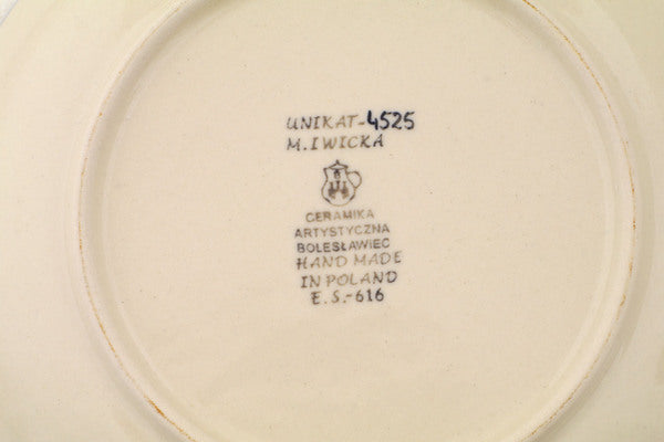 This Marigold Chain 8" Dessert Plate was handmade and hand decorated in Boleslawiec, Poland by skilled artisans according to old traditional methods. This is a Polish pottery Signature Unikat, which means that it has been hand painted with both sponges and brushes and it is signed by the artist who painted it. Unikat pieces are the most intricate works of art. Larger Unikat items take hours of very careful work to finish. This Polish stoneware is microwave, dishwasher, freezer, and oven safe up to 480°F. It does not contain lead or cadmium. It is part of the Marigold Chain Collection.