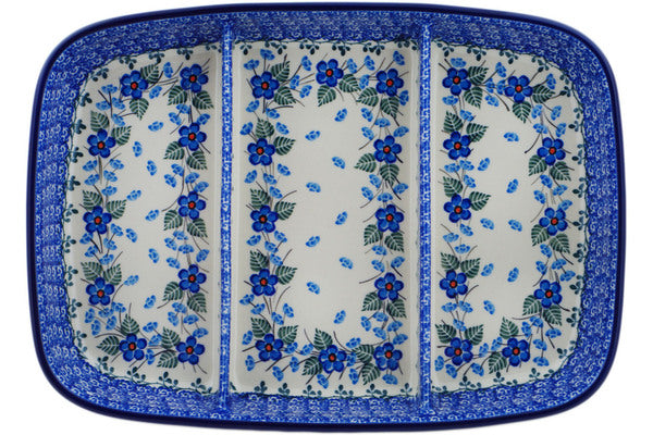 Home Ceramika Artystyczna Divided Dish 13" Blue Blossom Theme