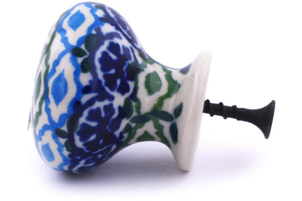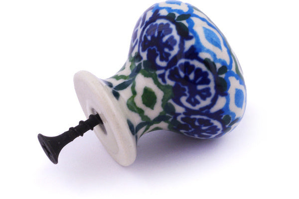 This Aztec Eyes 1" Drawer knob 1-3/8 inch was handmade and hand decorated in Boleslawiec, Poland by skilled artisans according to old traditional methods. This Polish stoneware is microwave, dishwasher, freezer, and oven safe up to 480°F. It does not contain lead or cadmium. It is part of the Aztec Eyes Collection.