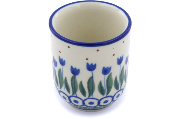 This Water Tulip 2 oz Espresso Cup was handmade and hand decorated in Boleslawiec, Poland by skilled artisans according to old traditional methods. This Polish stoneware is microwave, dishwasher, freezer, and oven safe up to 480°F. It does not contain lead or cadmium. It is part of the Water Tulip Collection.