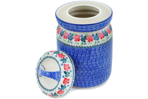 This Rose Wreath 118 oz Fermenting Crock with Water Seal Airlock was handmade and hand decorated in Boleslawiec, Poland by skilled artisans according to old traditional methods. This Polish stoneware is microwave, dishwasher, freezer, and oven safe up to 480°F. It does not contain lead or cadmium. It is part of the Rose Wreath Collection.