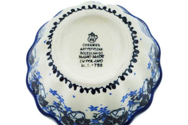 This Flowers At Dusk 4" Fluted Bowl was handmade and hand decorated in Boleslawiec, Poland by skilled artisans according to old traditional methods. This Polish stoneware is microwave, dishwasher, freezer, and oven safe up to 480°F. It does not contain lead or cadmium. It is part of the Flowers At Dusk Collection.