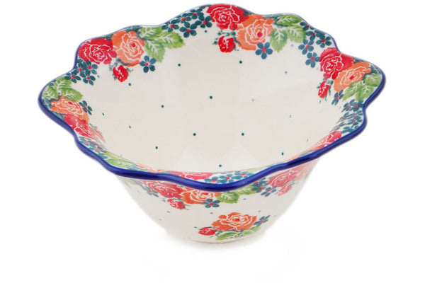 This In The Rose Garden 7" Fluted Bowl was handmade and hand decorated in Boleslawiec, Poland by skilled artisans according to old traditional methods. This Polish stoneware is microwave, dishwasher, freezer, and oven safe up to 480°F. It does not contain lead or cadmium. It is part of the In The Rose Garden Collection.