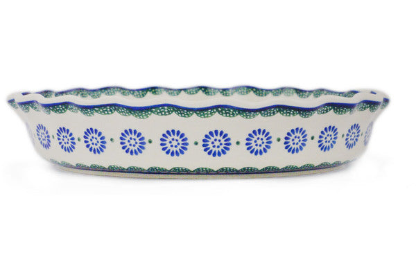 This Maia 10" Fluted Pie Dish was handmade and hand decorated in Boleslawiec, Poland by skilled artisans according to old traditional methods. This Polish stoneware is microwave, dishwasher, freezer, and oven safe up to 480°F. It does not contain lead or cadmium. It is part of the Maia Collection.