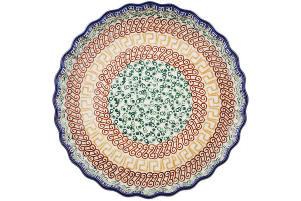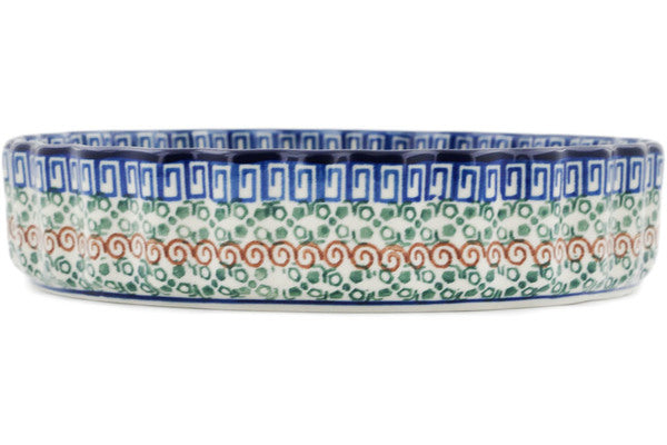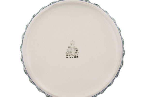 This Grecian Sea 8" Fluted Pie Dish was handmade and hand decorated in Boleslawiec, Poland by skilled artisans according to old traditional methods. This Polish stoneware is microwave, dishwasher, freezer, and oven safe up to 480°F. It does not contain lead or cadmium. It is part of the Grecian Sea Collection.