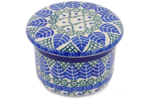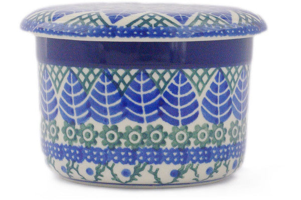 This Blue Alpine 4" French Butter Dish was handmade and hand decorated in Boleslawiec, Poland by skilled artisans according to old traditional methods. This Polish stoneware is microwave, dishwasher, freezer, and oven safe up to 480°F. It does not contain lead or cadmium. It is part of the Blue Alpine Collection.