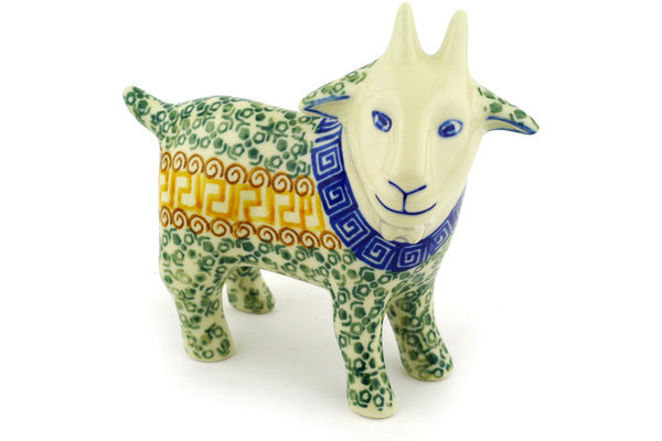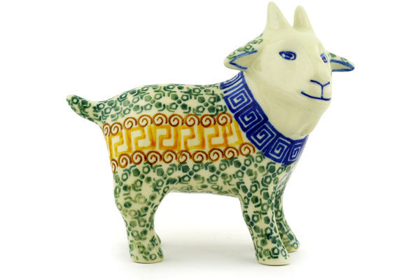 This Grecian Sea 6" Goat Figurine was handmade and hand decorated in Boleslawiec, Poland by skilled artisans according to old traditional methods. This Polish stoneware is microwave, dishwasher, freezer, and oven safe up to 480°F. It does not contain lead or cadmium. It is part of the Grecian Sea Collection.