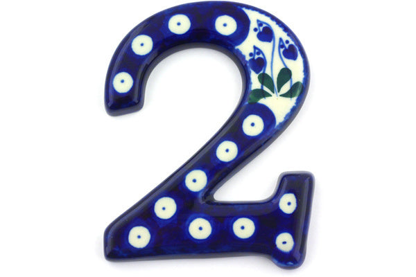 This Bleeding Heart Peacock 4" House Number TWO (2) was handmade and hand decorated in Boleslawiec, Poland by skilled artisans according to old traditional methods. This Polish stoneware is microwave, dishwasher, freezer, and oven safe up to 480°F. It does not contain lead or cadmium. It is part of the Bleeding Heart Peacock Collection.