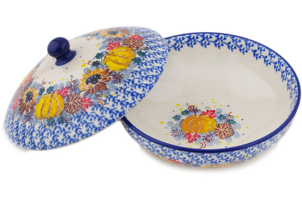 This Autumn Falling Leaves 7" Jar with Lid was handmade and hand decorated in Boleslawiec, Poland by skilled artisans according to old traditional methods. This is a Polish pottery Signature Unikat, which means that it has been hand painted with both sponges and brushes and it is signed by the artist who painted it. Unikat pieces are the most intricate works of art. Larger Unikat items take hours of very careful work to finish. This Polish stoneware is microwave, dishwasher, freezer, and oven safe up to 480°F. It does not contain lead or cadmium. It is part of the Autumn Falling Leaves Collection.