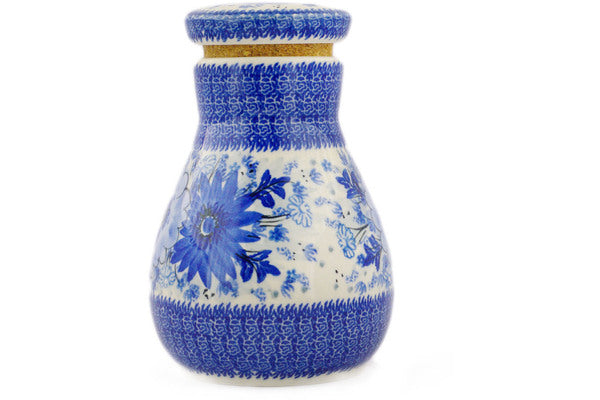This Blue Wildflower Patch 8" Jar with Lid was handmade and hand decorated in Boleslawiec, Poland by skilled artisans according to old traditional methods. This is a Polish pottery Signature Unikat, which means that it has been hand painted with both sponges and brushes and it is signed by the artist who painted it. Unikat pieces are the most intricate works of art. Larger Unikat items take hours of very careful work to finish. This Polish stoneware is microwave, dishwasher, freezer, and oven safe up to 480°F. It does not contain lead or cadmium. It is part of the Blue Wildflower Patch Collection.