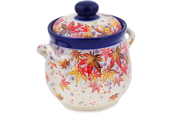 This Perfect Autumn 6" Jar with Lid and Handles was handmade and hand decorated in Boleslawiec, Poland by skilled artisans according to old traditional methods. This is a Polish pottery Signature Unikat, which means that it has been hand painted with both sponges and brushes and it is signed by the artist who painted it. Unikat pieces are the most intricate works of art. Larger Unikat items take hours of very careful work to finish. This Polish stoneware is microwave, dishwasher, freezer, and oven safe up to 480°F. It does not contain lead or cadmium. It is part of the Perfect Autumn Collection.