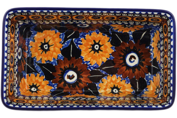 This Autumn Chrysanthemums 8" Loaf Pan 8" was handmade and hand decorated in Boleslawiec, Poland by skilled artisans according to old traditional methods. This is a Polish pottery Signature Unikat, which means that it has been hand painted with both sponges and brushes and it is signed by the artist who painted it. Unikat pieces are the most intricate works of art. Larger Unikat items take hours of very careful work to finish. This Polish stoneware is microwave, dishwasher, freezer, and oven safe up to 480°F. It does not contain lead or cadmium. It is part of the Autumn Chrysanthemums Collection.