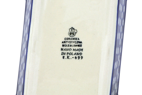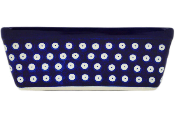 This Blue Eyes 8" Loaf Pan 8" was handmade and hand decorated in Boleslawiec, Poland by skilled artisans according to old traditional methods. This Polish stoneware is microwave, dishwasher, freezer, and oven safe up to 480°F. It does not contain lead or cadmium. It is part of the Blue Eyes Collection.