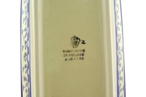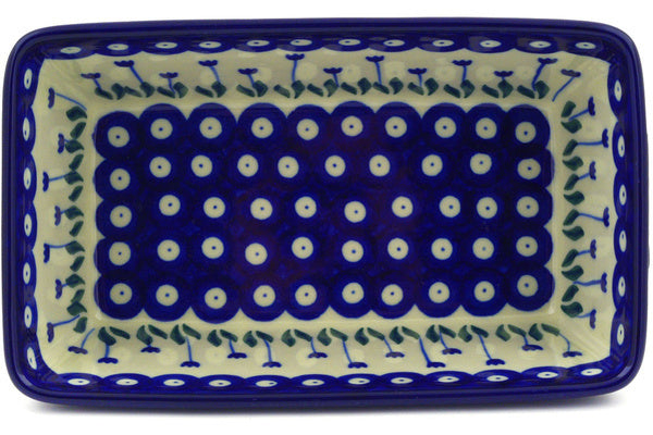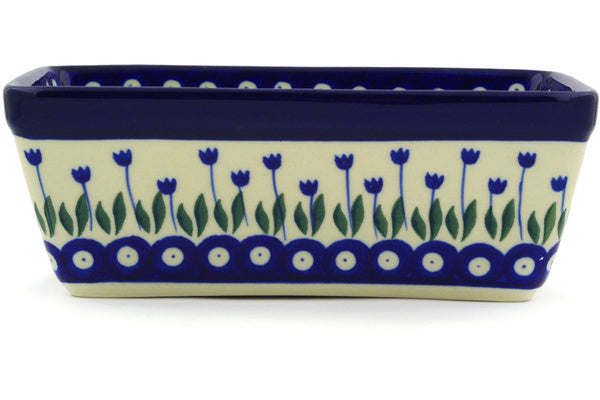 This Blue Tulip Peacock 8" Loaf Pan 8" was handmade and hand decorated in Boleslawiec, Poland by skilled artisans according to old traditional methods. This Polish stoneware is microwave, dishwasher, freezer, and oven safe up to 480°F. It does not contain lead or cadmium. It is part of the Blue Tulip Peacock Collection.