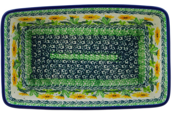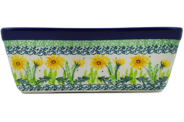 This Sweet Summer 8" Loaf Pan 8" was handmade and hand decorated in Boleslawiec, Poland by skilled artisans according to old traditional methods. This Polish stoneware is microwave, dishwasher, freezer, and oven safe up to 480°F. It does not contain lead or cadmium. It is part of the Sweet Summer Collection.