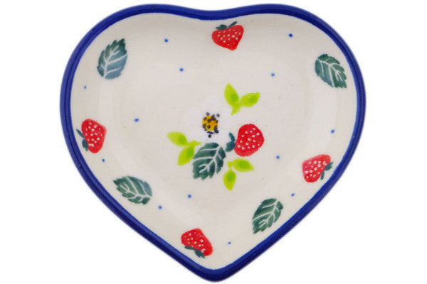 This Berry Burst 3" Mini Heart Bowl was handmade and hand decorated in Boleslawiec, Poland by skilled artisans according to old traditional methods. This Polish stoneware is microwave, dishwasher, freezer, and oven safe up to 480°F. It does not contain lead or cadmium. It is part of the Berry Burst Collection.