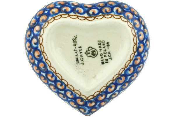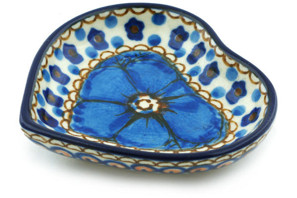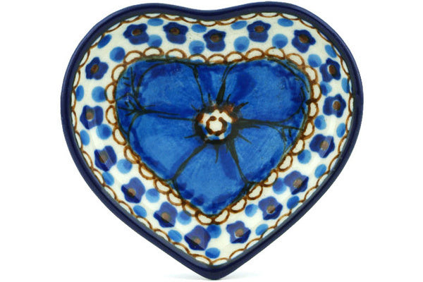 This Blue Poppies 3" Mini Heart Bowl was handmade and hand decorated in Boleslawiec, Poland by skilled artisans according to old traditional methods. This is a Polish pottery Signature Unikat, which means that it has been hand painted with both sponges and brushes and it is signed by the artist who painted it. Unikat pieces are the most intricate works of art. Larger Unikat items take hours of very careful work to finish. This Polish stoneware is microwave, dishwasher, freezer, and oven safe up to 480°F. It does not contain lead or cadmium. It is part of the Blue Poppies Collection.