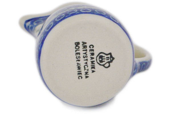 This Blue Daisy Circle 2" Mini Jug was handmade and hand decorated in Boleslawiec, Poland by skilled artisans according to old traditional methods. This Polish stoneware is microwave, dishwasher, freezer, and oven safe up to 480°F. It does not contain lead or cadmium. It is part of the Blue Daisy Circle Collection.