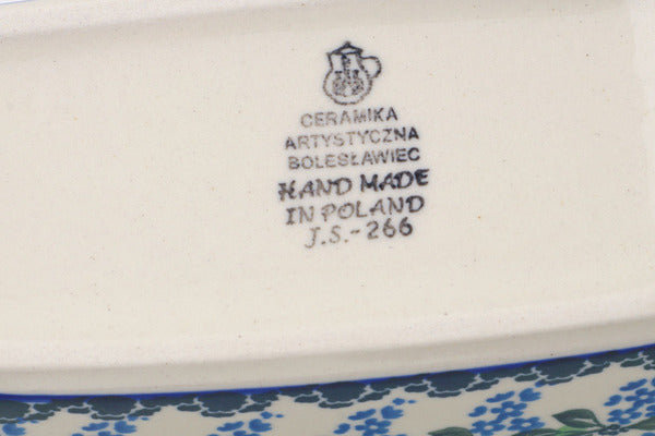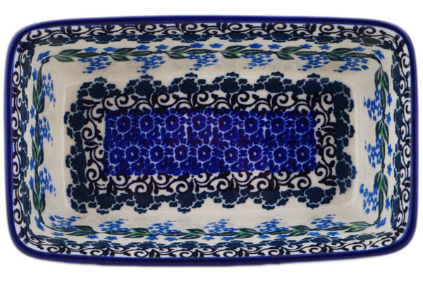 This Wisteria 6" Mini loaf pan was handmade and hand decorated in Boleslawiec, Poland by skilled artisans according to old traditional methods. This Polish stoneware is microwave, dishwasher, freezer, and oven safe up to 480°F. It does not contain lead or cadmium. It is part of the Wisteria Collection.