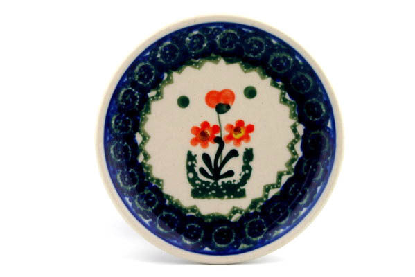 This Peach Spring Daisy 4" Mini Plate, Coaster plate was handmade and hand decorated in Boleslawiec, Poland by skilled artisans according to old traditional methods. This Polish stoneware is microwave, dishwasher, freezer, and oven safe up to 480°F. It does not contain lead or cadmium. It is part of the Peach Spring Daisy Collection.