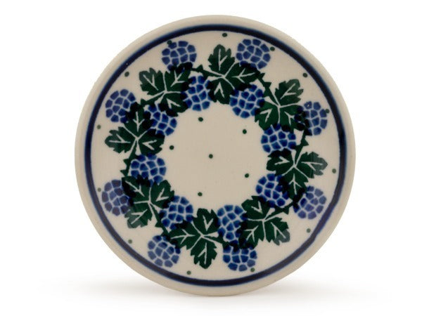 This Summer Blackberries 4" Mini Plate, Coaster plate was handmade and hand decorated in Boleslawiec, Poland by skilled artisans according to old traditional methods. This Polish stoneware is microwave, dishwasher, freezer, and oven safe up to 480°F. It does not contain lead or cadmium. It is part of the Summer Blackberries Collection.