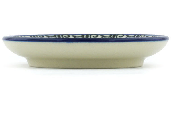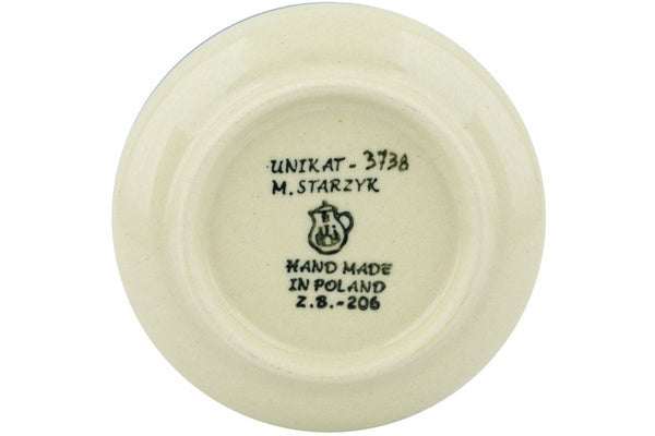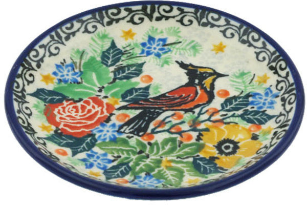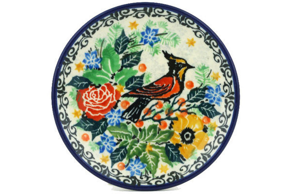 This Woodpecker Meadow 4" Mini Plate, Coaster plate was handmade and hand decorated in Boleslawiec, Poland by skilled artisans according to old traditional methods. This is a Polish pottery Signature Unikat, which means that it has been hand painted with both sponges and brushes and it is signed by the artist who painted it. Unikat pieces are the most intricate works of art. Larger Unikat items take hours of very careful work to finish. This Polish stoneware is microwave, dishwasher, freezer, and oven safe up to 480°F. It does not contain lead or cadmium. It is part of the Woodpecker Meadow Collection.