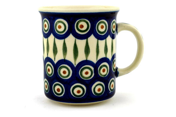 This Peacock Leaves 10 oz Mug was handmade and hand decorated in Boleslawiec, Poland by skilled artisans according to old traditional methods. This Polish stoneware is microwave, dishwasher, freezer, and oven safe up to 480°F. It does not contain lead or cadmium. It is part of the Peacock Leaves Collection.