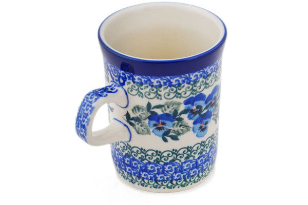 This Blue Pansy 8 oz Mug was handmade and hand decorated in Boleslawiec, Poland by skilled artisans according to old traditional methods. This Polish stoneware is microwave, dishwasher, freezer, and oven safe up to 480°F. It does not contain lead or cadmium. It is part of the Blue Pansy Collection.