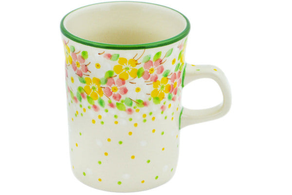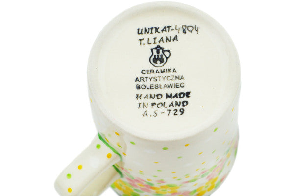 This Blossom Sprinkle 8 oz Mug was handmade and hand decorated in Boleslawiec, Poland by skilled artisans according to old traditional methods. This is a Polish pottery Signature Unikat, which means that it has been hand painted with both sponges and brushes and it is signed by the artist who painted it. Unikat pieces are the most intricate works of art. Larger Unikat items take hours of very careful work to finish. This Polish stoneware is microwave, dishwasher, freezer, and oven safe up to 480°F. It does not contain lead or cadmium. It is part of the Blossom Sprinkle Collection.