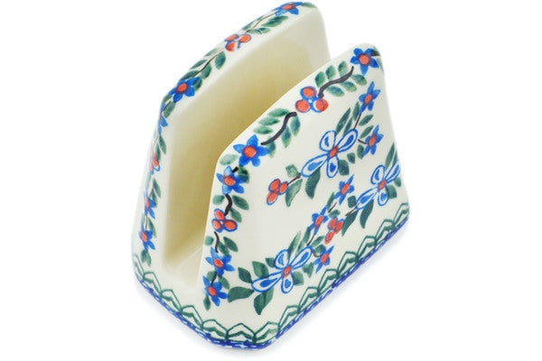 This Azure Blooms 4" Napkin Holder was handmade and hand decorated in Boleslawiec, Poland by skilled artisans according to old traditional methods. This Polish stoneware is microwave, dishwasher, freezer, and oven safe up to 480°F. It does not contain lead or cadmium. It is part of the Azure Blooms Collection.