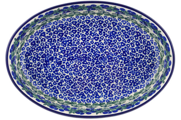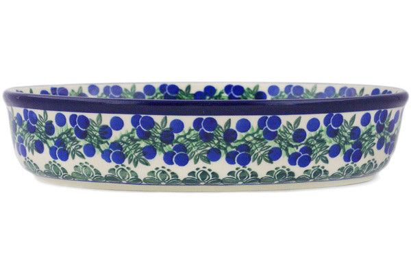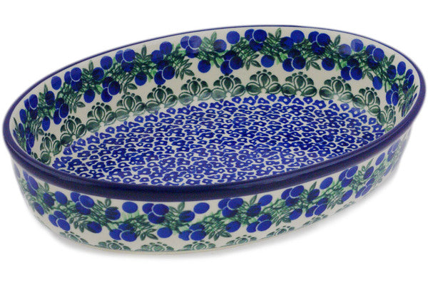 This Blueberry Fields Forever 11" Oval Baker was handmade and hand decorated in Boleslawiec, Poland by skilled artisans according to old traditional methods. This Polish stoneware is microwave, dishwasher, freezer, and oven safe up to 480°F. It does not contain lead or cadmium. It is part of the Blueberry Fields Forever Collection.