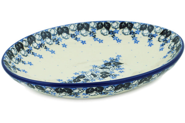 This Flowers At Dusk 10" Oval Bowl was handmade and hand decorated in Boleslawiec, Poland by skilled artisans according to old traditional methods. This Polish stoneware is microwave, dishwasher, freezer, and oven safe up to 480°F. It does not contain lead or cadmium. It is part of the Flowers At Dusk Collection.