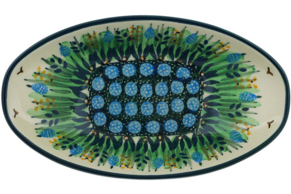 This Prairie Land 7" Oval Bowl was handmade and hand decorated in Boleslawiec, Poland by skilled artisans according to old traditional methods. This is a Polish pottery Signature Unikat, which means that it has been hand painted with both sponges and brushes and it is signed by the artist who painted it. Unikat pieces are the most intricate works of art. Larger Unikat items take hours of very careful work to finish. This Polish stoneware is microwave, dishwasher, freezer, and oven safe up to 480°F. It does not contain lead or cadmium. It is part of the Prairie Land Collection.