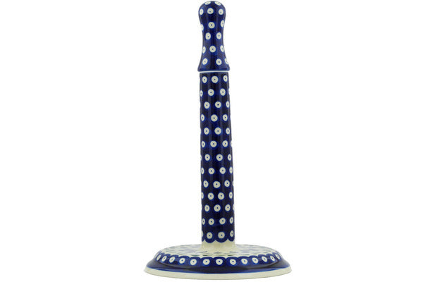 This Bleeding Heart Peacock 13" Paper Towel Stand was handmade and hand decorated in Boleslawiec, Poland by skilled artisans according to old traditional methods. This Polish stoneware is microwave, dishwasher, freezer, and oven safe up to 480°F. It does not contain lead or cadmium. It is part of the Bleeding Heart Peacock Collection.