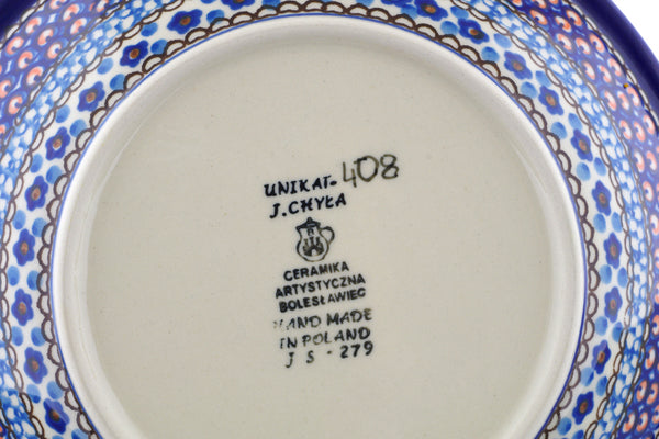 This Cobalt Poppies 8" Pasta Bowl was handmade and hand decorated in Boleslawiec, Poland by skilled artisans according to old traditional methods. This is a Polish pottery Signature Unikat, which means that it has been hand painted with both sponges and brushes and it is signed by the artist who painted it. Unikat pieces are the most intricate works of art. Larger Unikat items take hours of very careful work to finish. This Polish stoneware is microwave, dishwasher, freezer, and oven safe up to 480°F. It does not contain lead or cadmium. It is part of the Cobalt Poppies Collection.