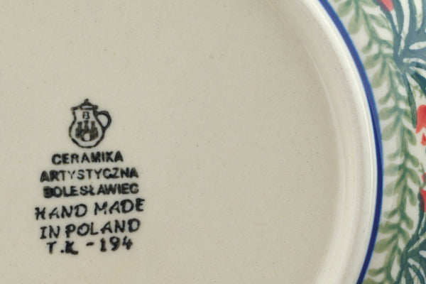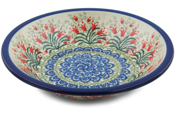 This Crimson Bells 8" Pasta Bowl was handmade and hand decorated in Boleslawiec, Poland by skilled artisans according to old traditional methods. This Polish stoneware is microwave, dishwasher, freezer, and oven safe up to 480°F. It does not contain lead or cadmium. It is part of the Crimson Bells Collection.