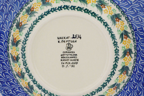 This Butterfly Love 9" Pasta Bowl was handmade and hand decorated in Boleslawiec, Poland by skilled artisans according to old traditional methods. This is a Polish pottery Signature Unikat, which means that it has been hand painted with both sponges and brushes and it is signed by the artist who painted it. Unikat pieces are the most intricate works of art. Larger Unikat items take hours of very careful work to finish. This Polish stoneware is microwave, dishwasher, freezer, and oven safe up to 480°F. It does not contain lead or cadmium. It is part of the Butterfly Love Collection.