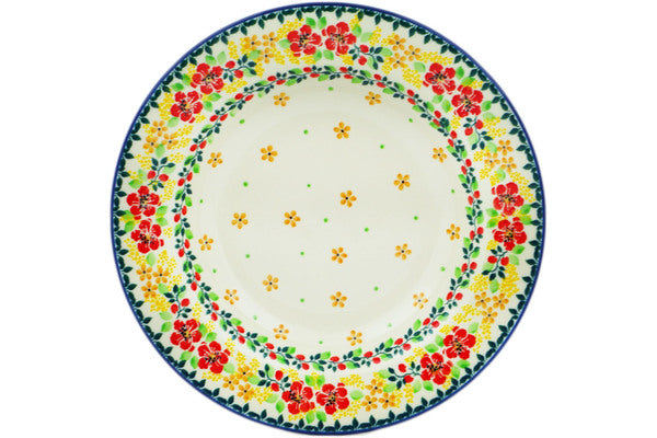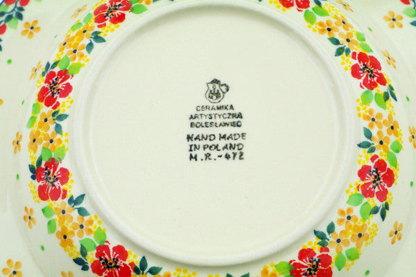 This Summer Blossoms 9" Pasta Bowl was handmade and hand decorated in Boleslawiec, Poland by skilled artisans according to old traditional methods. This Polish stoneware is microwave, dishwasher, freezer, and oven safe up to 480°F. It does not contain lead or cadmium. It is part of the Summer Blossoms Collection.